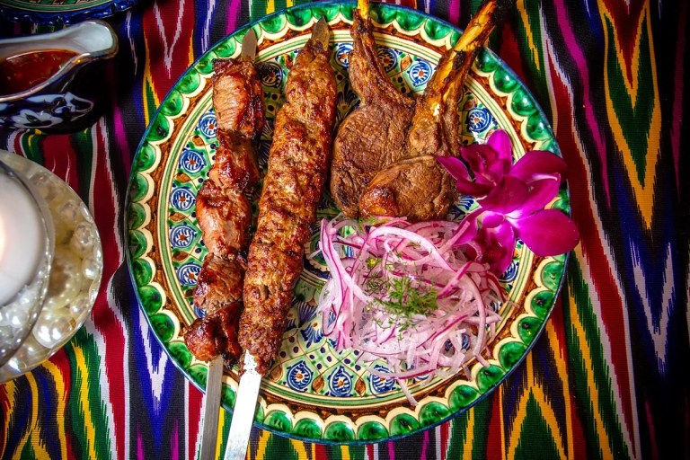 A mural depicting a desert beneath a floating pair of eyes is the only sign that beckons passersby into this Uzbek-style hideaway, accessible only from one side of NE 163rd Street. Chayhana Oasis offers fare not only from Uzbekistan but also the entire central Eurasian region. Translation: You can eat your way around several nations. To keep the proceedings simple and entertaining, the menu contains quirky descriptions of lesser-known dishes. Begin with the dolmas, tender stuffed Turkish-style grape leaves; continue with shish kebabs of lamb, chicken, beef, or shrimp. For dessert, try gnezdo, a crunchy meringue topped with diced walnuts. In standard European fashion, wash it all down with a shot of top-shelf vodka. Go ahead – there’s no shortage of fresh, chewy Uzbek-style bread to soak it up.