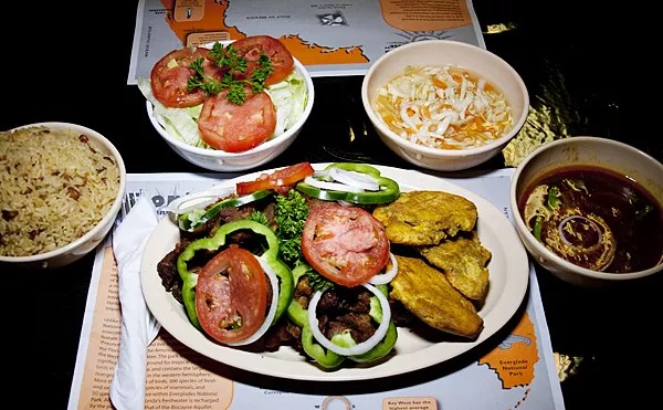 Short of having a Haitian grandmère up to her apron strings in pigs’ feet at home, you aren’t likely to find better-tasting and less-expensive Haitian comfort food than this. The griot (fried pork) is tender and the stewed goat heavenly. The menu is short and sweet, so just pick the type of meat or fish you want (you can also order grits and legumes as entrées) and place your order. Each plate comes with rice, beans, plantains, and salad. Pound for pound, the fare at this Little Haiti fave is less expensive than fast food and much better for you (add a soft drink and your dinner total still runs under $10), but arrive hungry, because the portions are huge. Soups are offered on the weekends. There’s a steady stream of customers, so you might have to wait a bit either in the main restaurant or even at the pick-up window, which thankfully stays open until midnight every night but Sunday.