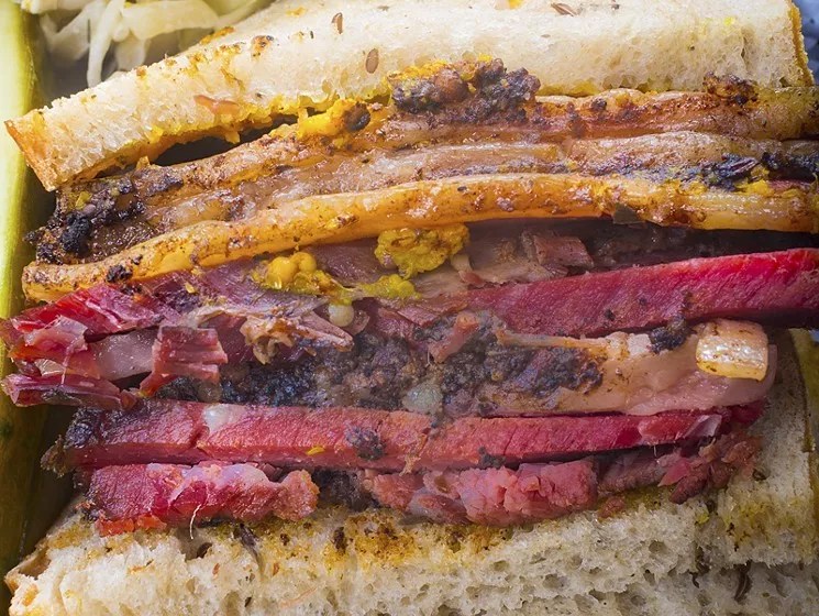 There are New York delicatessens that don’t go as hard as Josh’s Deli. It’s amazing to see thick cuts of house-cured pastrami gleaming with moisture and capped with ribbons of fat. The Angus brisket is cured for ten days, smoked, and then steamed; it evokes a smoky flavor (with a hint of sweetness) that puts it on a peppery par with great barbecue. The corned beef is that same Angus brisket, cured, braised, and sliced thick and juicy – miles apart from the pallid strips of meat that pass for an original cut nowadays. All sandwiches come on thin-sliced, seed-flecked rye spread with dazzling yellow mustard – made, like everything else, on the premises. All meats and fish are cured and/or smoked in-house. Owner Josh Marcus makes the sour pickles too, alongside wild creations such as the “Jewban,” an unholy Jewish-Cuban alliance made with pastrami, Swiss cheese, pickles, and pork.