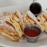 “Modern comfort food” means a slightly jazzed, occasionally Asian- or Mediterranean-inspired lineup of dishes. For instance, there are great panko-crusted cubes of “coconut essence” tofu pooled in apricot-soy glaze. We also liked “little ears” pasta with broccoli rabe and numerous patty pieces of savory homemade turkey sausage; thin but flavorful lentil soup; and double-ribbed organic lamb chops.