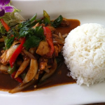 At most Thai restaurants with tacked-on sushi bars, the sushi tastes like the commercially motivated afterthought it is. Here, the sushi is extraordinary. None of the fish is frozen, and the dedicated chef/owner makes two trips daily to nearby marinas for the freshest local catches. Even the simplest and most traditional sushi and sashimi are, therefore, impeccable, but most recommended are the chef’s specials: Nobu-style nouvelle dishes such as miso-marinated, broiled black cod; elegantly diced tartares of toro, hamachi, and salmon; new-style sashimi, slightly seared with drizzles of hot oil and garnished with garlic purée, ginger, and sesame; and whitefish tiradito, dressed with aj