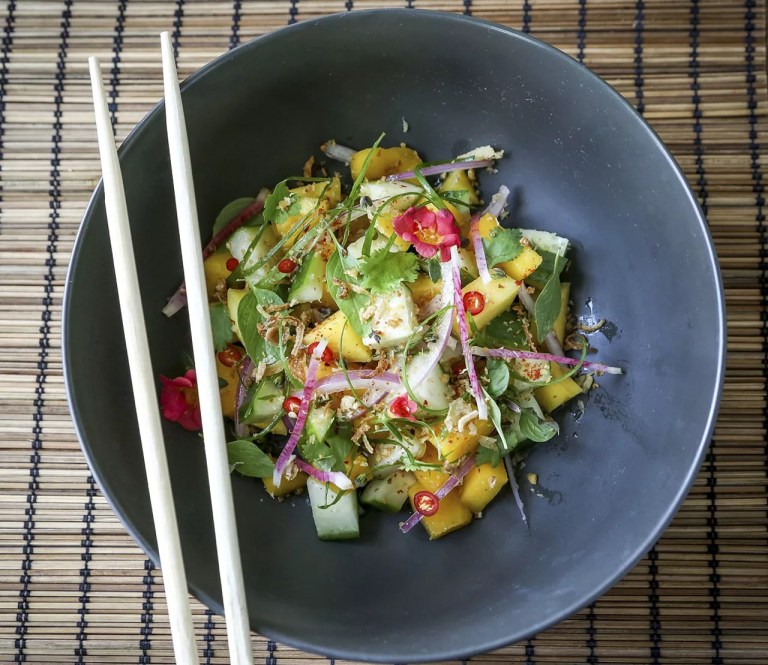 Phuc Yea is a grand 110-seater filled with the sounds of ’90s hip-hop and the scent of Vietnam’s ubiquitous fish sauce. That irresistible combo earned Cesar Zapata and Ani Meinhold’s Upper East Side mainstay a Michelin Bib Gourmand designation in 2022. Try the green papaya salad, in which chilies, garlic, dried shrimp and squid, and Vietnamese coriander are pulverized into a potent paste that’s tossed with toothsome papaya threads, carrots, and sweet cherry tomatoes, then crowned with banana blossom ribbons, shallots, and herbs. The P.Y. noodles – tossed with garlic butter, oyster sauce, and Parmesan cheese – are soulful comfort food, as is a pho made with rich broth. On Sundays, indulge in Phuc Yea’s spirited brunch.