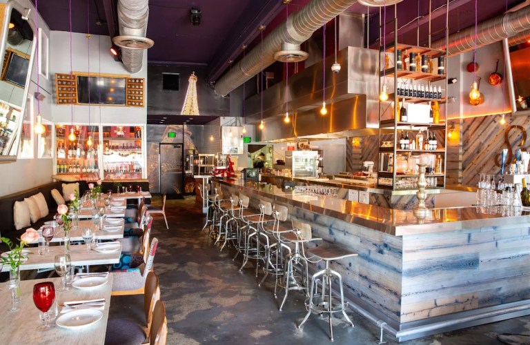Semilla, the Spanish word for “seed,” serves romantic small plates in South Beach. A large metal horseshoe bar, showcasing an open kitchen with chefs wearing checkered fedoras while working the teppanyaki station, stands at the center. Classically trained French chef Frederic Joulin takes a departure from the traditional with pot stickers ($12) that come in playful variations such as Buffalo chicken, braised beef short rib, barbecued ribs, and organic tofu with vegetables. The standout dish is the octopus ($18). Its meat is charred on a wood-fired grill, sliced, and served on a bed of fennel, radish, and frisée with citrus dressing. The freshness of this dish is rivaled only by the wall of potted herbs used to top off most plates. To end your meal, try the ice-cream minisliders ($4). The sesame-seed-studded macaron is the “bun,” a mango and passionfruit gelée makes up the orange “cheese” layer, and chocolate-encased ice cream plays the part of the patty.