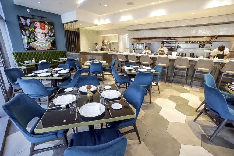 At Three, Mango Gang legend Norman Van Aken cooks his signature Florida-fusion cuisine in a sleek and tropical space. The staff is disciplined, and the food is topnotch. But even more spectacular is the space. It’s outfitted with midcentury-modern furnishings such as royal-blue velvet chairs and gold-trimmed black tables. They’re streamlined and allow for diners to spread out while remaining close. Customers dining in pairs should opt for the three-course experience. Or leave it up to Van Aken and chef de cuisine Juan Garrido to choose the menu for a five-course tasting menu.