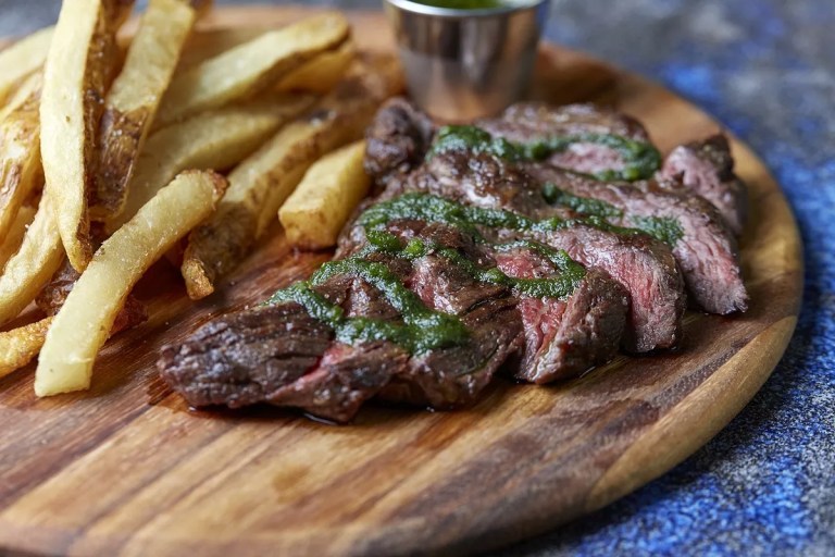 Vista’s all-day menu includes a sweet grilled peach salad with stracciatella and toasted pine nuts and a daily rotating risotto. The gnocchetti arrives with a spring-green purée of poblano peppers and mint, garnished with a creamy parmigiana foam. Crushed pistachios give the dish added texture and an earthy, sweet finish. Other main courses range from a half roasted chicken and veal chop milanesa to an eight-ounce burger made with a blend of sirloin, brisket, and rib eye, garnished with portobello mushrooms, mozzarella, and sun-dried tomato spread.