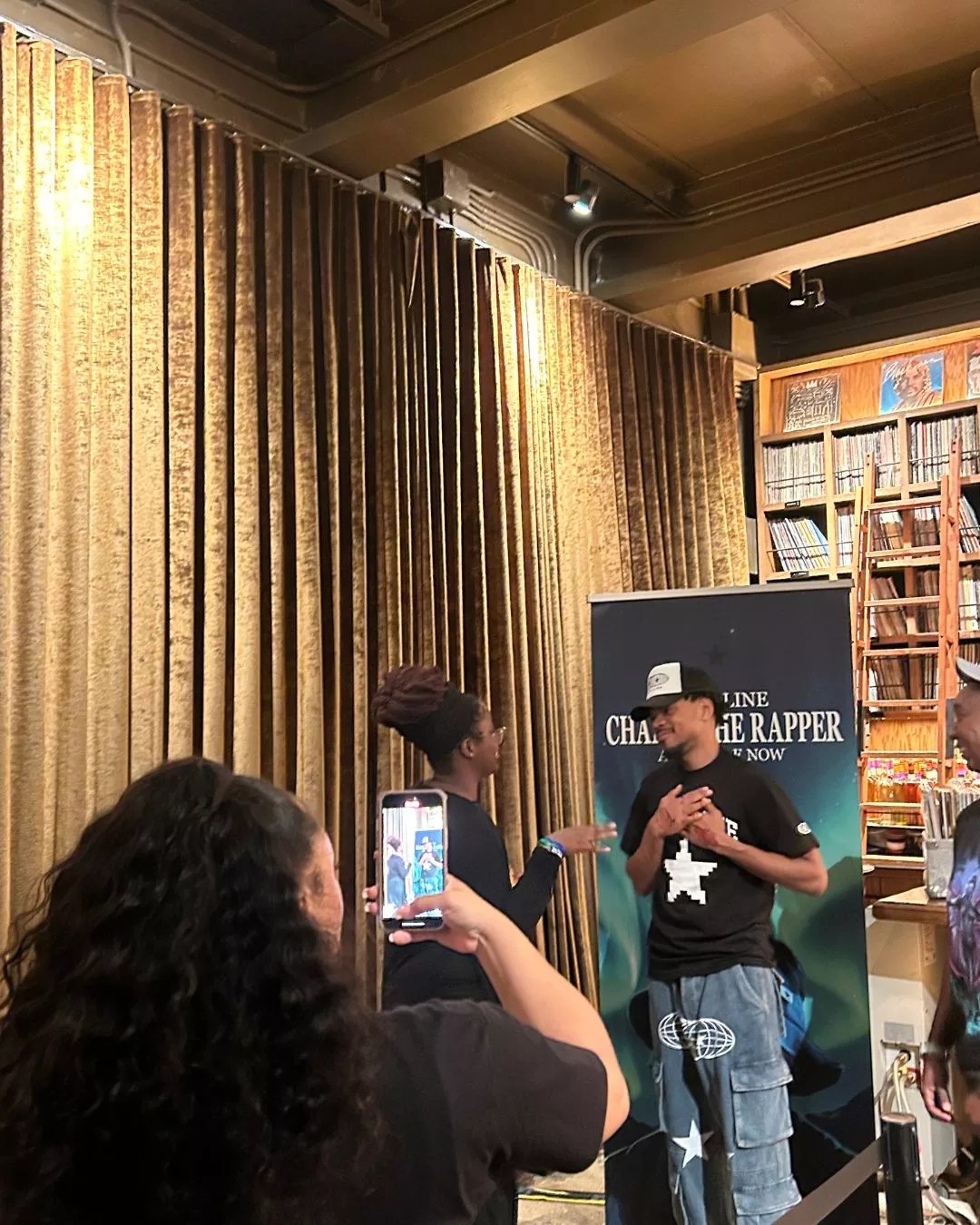 After meeting Chance, fans could shop the latest merch, including the scannable Star Line CD, album tee, hoodie, and collector’s items like the Acid Rap tenth Anniversary vinyl. Signed copies were not sold at this event, and Dante’s HiFi served cocktails for attendees.