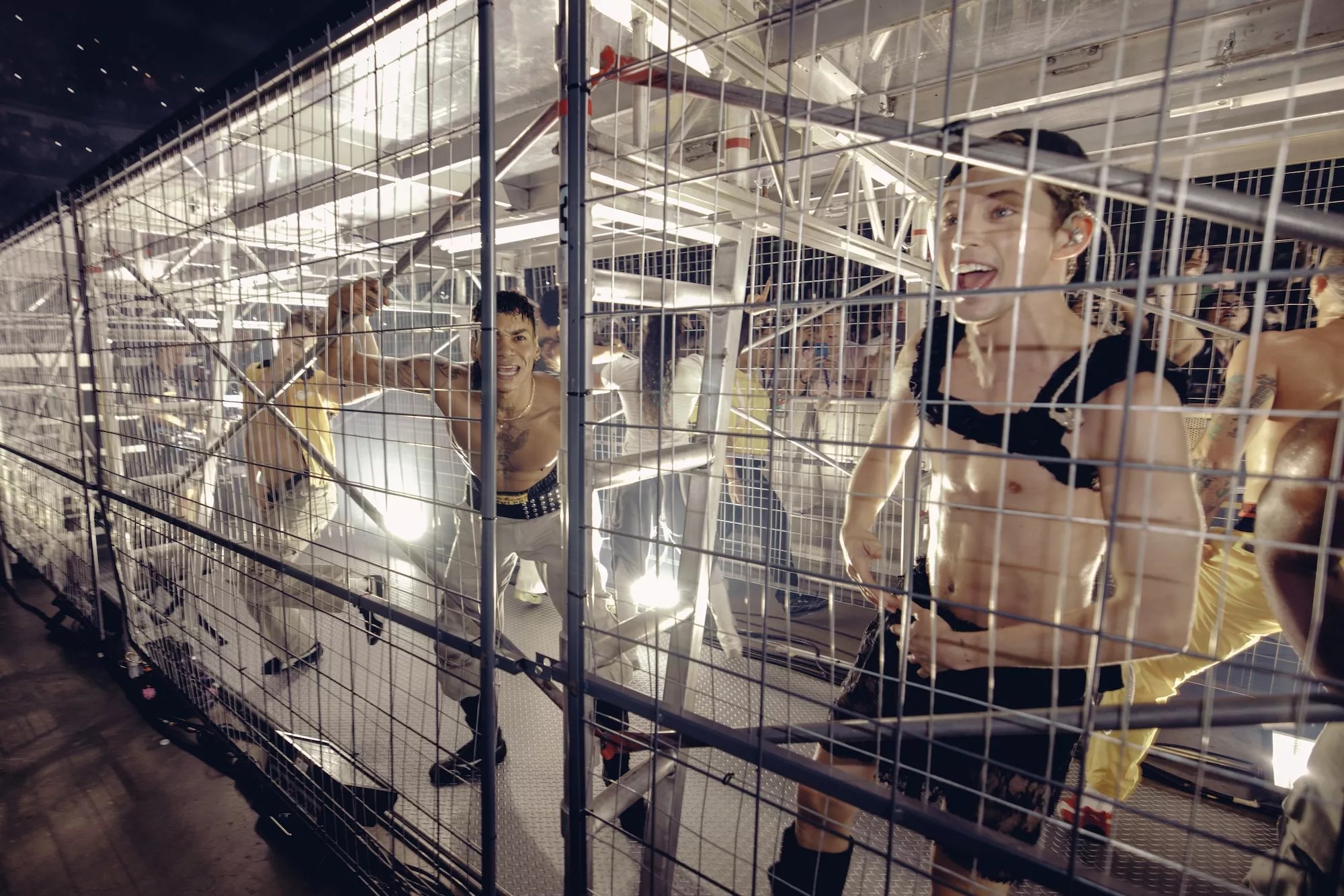 Once inside the arena, it was evident the night would be like no other. This was already clear with the venue’s setup, which included an industrial-like feel complete with railings, an underground tunnel, light-up wires overhead, and a DJ booth guarded by chainlink fences in the middle of the floor. Plus, instead of seating, the pit in the center of the arena allowed many attendees to get a money shot of Charli and Troye throughout the evening.