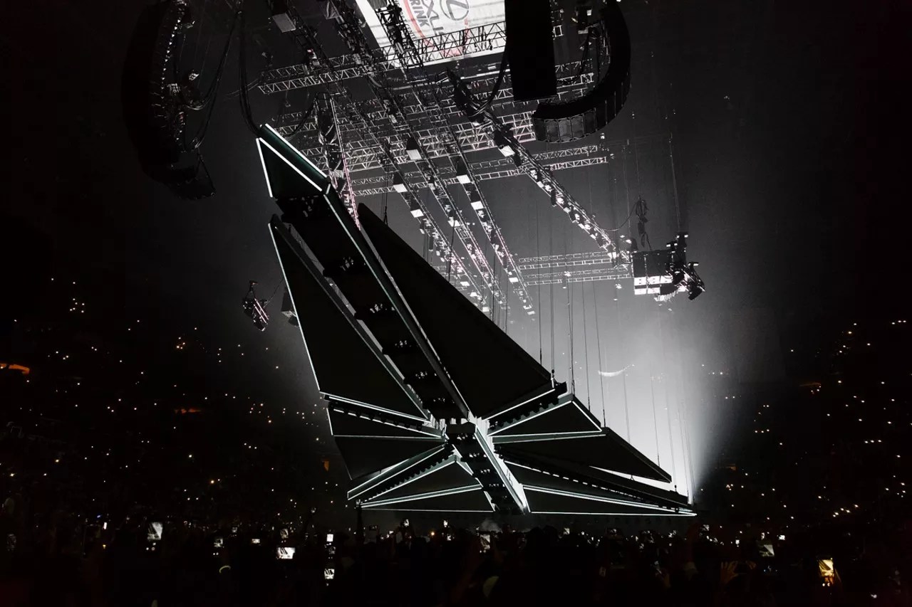 Rae Sremmurd, who thrilled the audience with every one of their hits except their recent number one, returned to the stage triumphantly to rile everyone up with “Black Beatles.” These unexpected cameos amplified the energy. The Weeknd was happy to join his four-piece band onstage and let the openers shine. In this way, everyone had their opportunity to show a peak-hour arena crowd what they were made of.