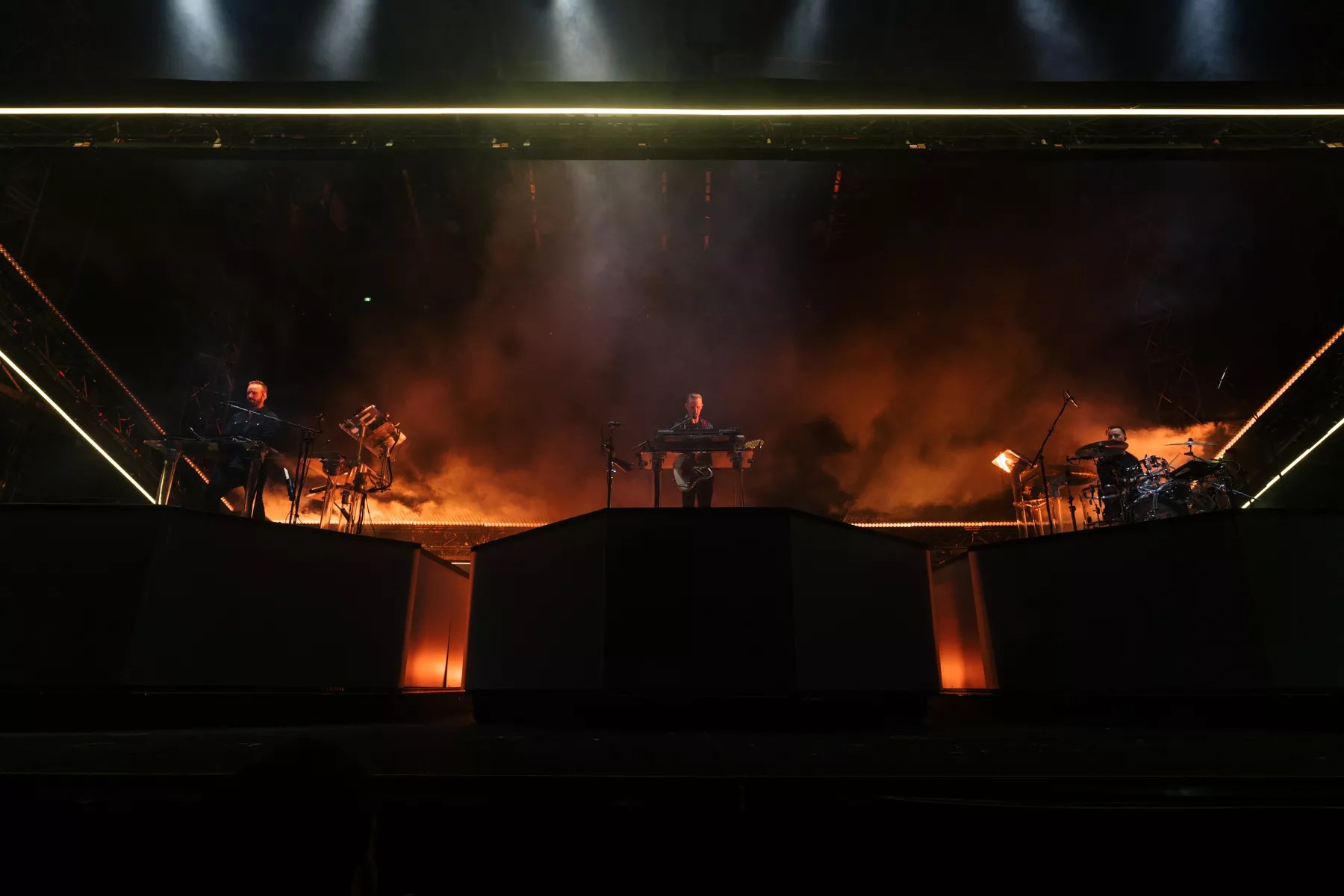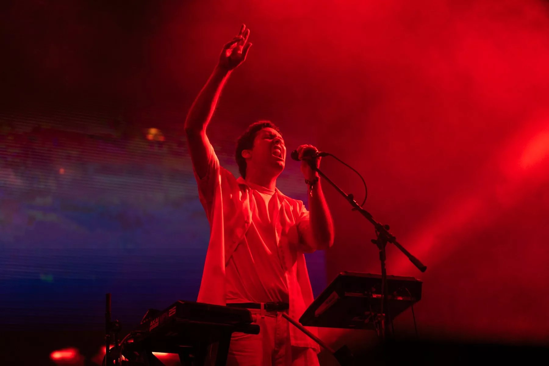If Khruangbin was Friday’s tailor-made music festival outfit, Saturday’s best example was Washed Out, which pulled what may have been the largest crowd to gather at the Sector 3 stage. Led by Ernest Greene, the band quickly set a dreamy, serene tone as projections of waves crashing played in the background. The set included performances of cuts like “Reckless Desires” and “Feel It All Around,” but the revelation of the night was “Get Lost,” wherein the graphics declared, “Take a hit and get lost.” The crowd seemed to agree as they let Greene whisk them away, probably to a place where the pandemic never happened. Washed Out’s entire set seemed by design to warm up the crowd with the band’s signature lo-fi numbers and a slow build before delving into dancier electronic numbers. Jose D. Duran