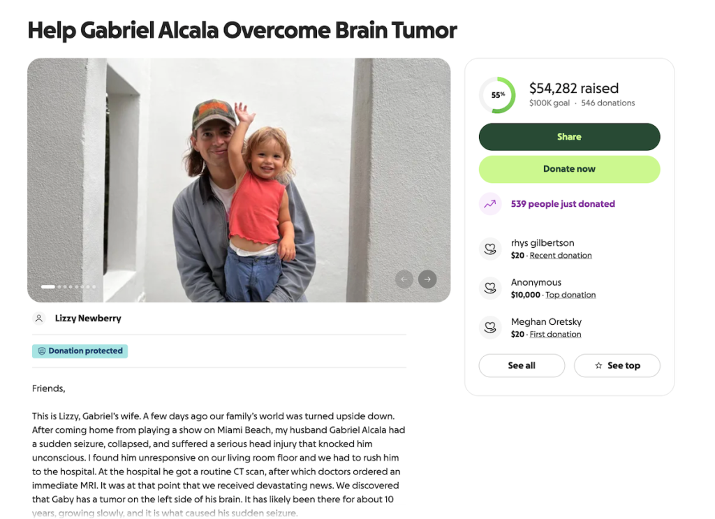 “Gabriel is the heart of our family and a beloved part of Miami’s arts and music community,” Lizzy writes. “We’re asking for your support, whether through a donation or by sharing his story.”