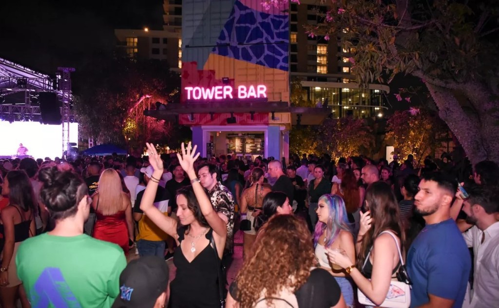 Building on the bones and legacy of Oasis, the venue’s expansive courtyard has been upgraded with a state-of-the-art motorized pergola, perfect for Miami’s unpredictable weather, along with 10 luxury VIP cabanas. A massive 20-foot LED video wall anchors the space, while the iconic Tower Bar, constructed from stacked shipping containers, remains a visual centerpiece, now refreshed with a new mural that fits the venue’s tropical meets high-energy vibe.
