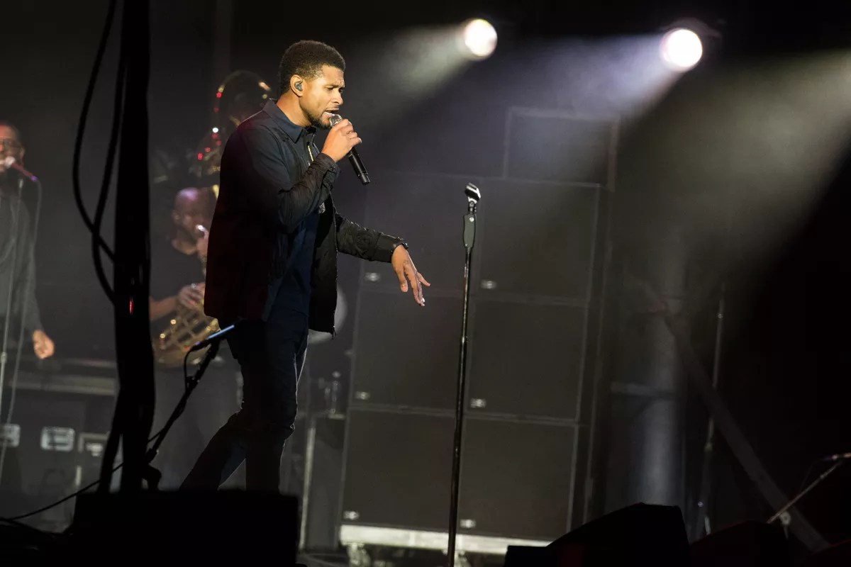 Usher, performing with the Roots.