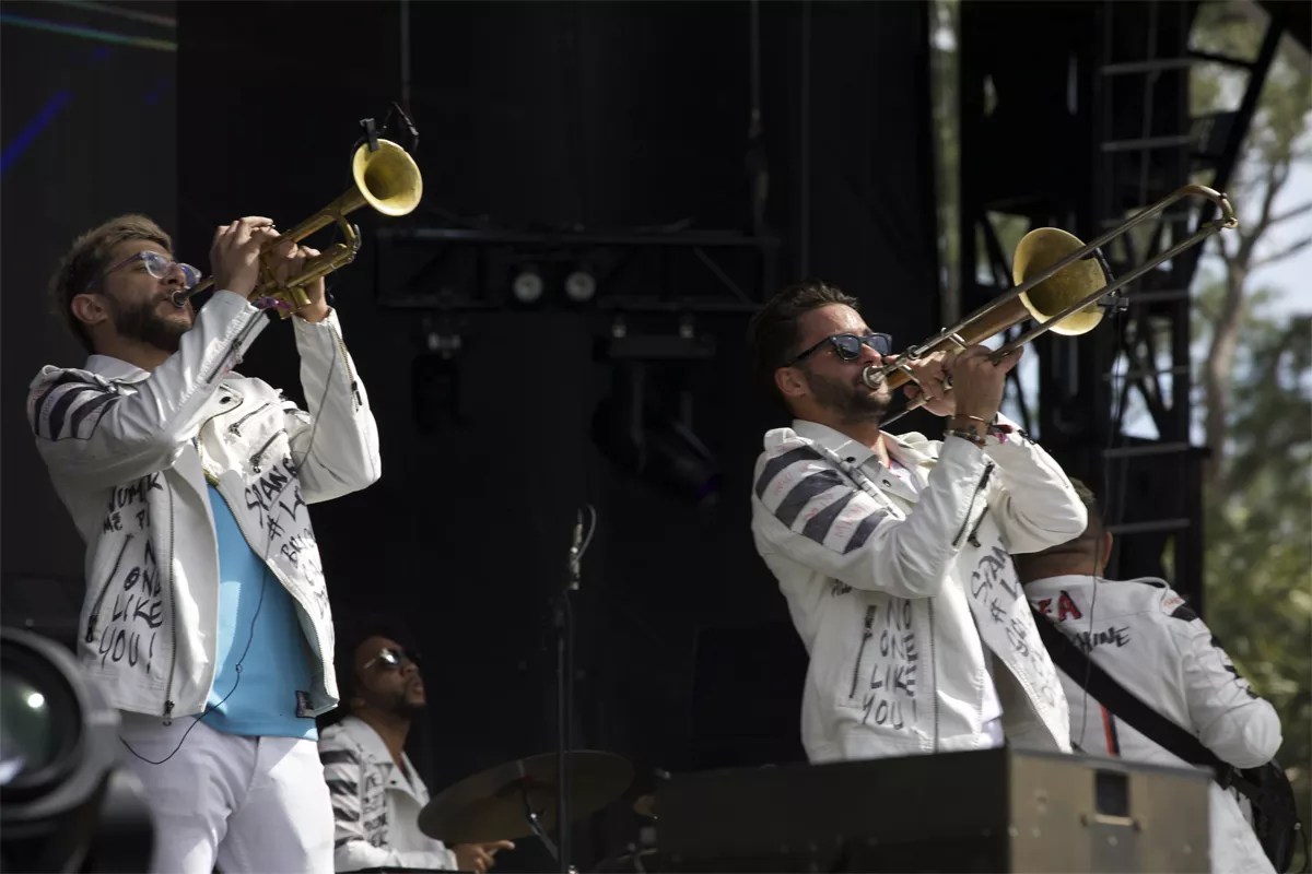 Miami six-piece band Los Wizzards battled its way to its 30 minutes on the festival’s Be stage by taking first place in the Destination Okeechobee competition earlier this year at the Ground. The Latin fusion-meets-ska outfit’s spot was well earned, and there was no holding back when the bandmates took the stage Friday. Their outfits – matching graffiti-splashed white pleather jackets and white pants – were a bold choice on an 85-degree day when the midday sun beat down punishingly. Bolder still was their performance: a no-holds-barred spectacle of kinetic energy. Founder Wizzmer (guitar), Juseph Ballestero (drums), Alex Coombs (trumpet), Rafael Querales (bass), David Rodriguez (sax), and Samy Hawk played their respective instruments with such verve that spectators’ eyes began to cross in an effort to catch each move (and it wasn’t just the heat and booze). At one point, Wizzmer pulled off a full split, only to be quickly outdone by Coombs, who went into a backbend from a standing position while pulling off a harmony. Coombs and Hawk closed the set by jumping into the crowd and breakdancing with the audience. In case anyone had forgotten that these oh-so-Miami musicians hailed from the 305, they finished by ripping off their jackets to reveal Heat jerseys. – Olivia McAuley