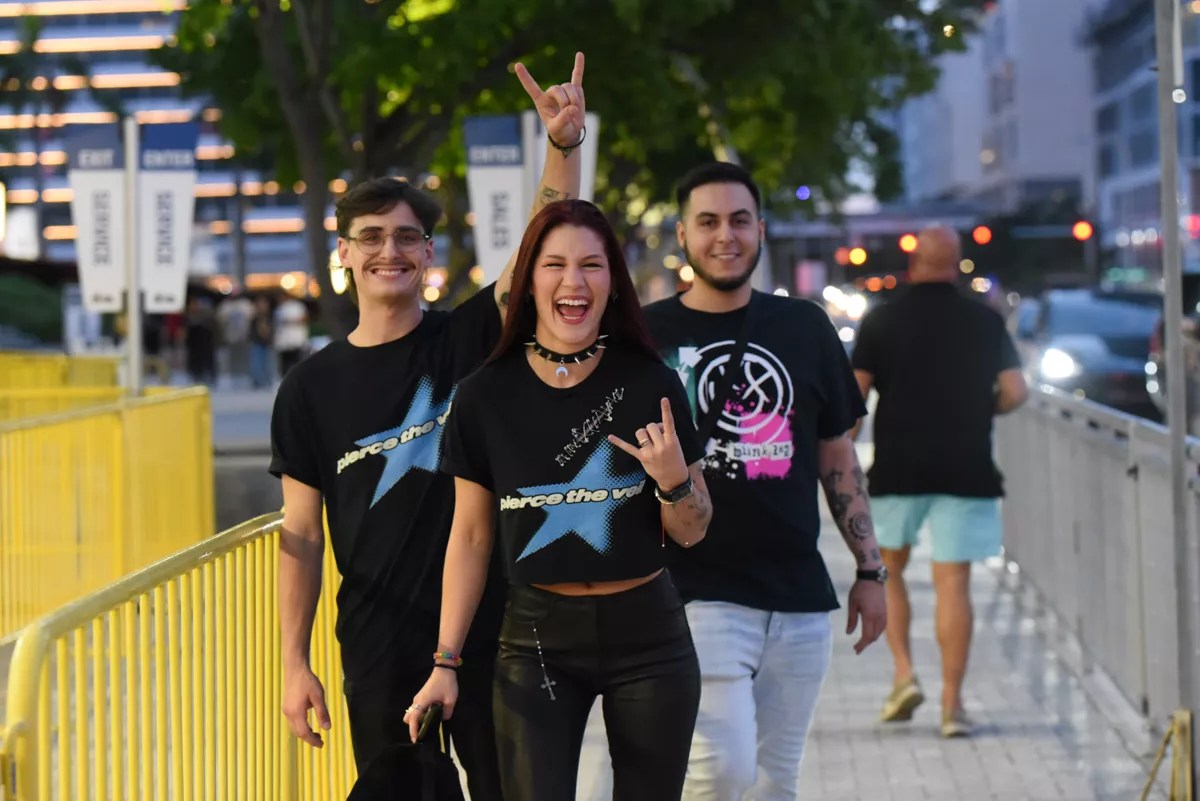 On Friday night, pop-punk fans from ages 14 to 45 gathered at the Kaseya Center in downtown Miami to celebrate a band whose music spans generations. From the new crop of emo kids dressed in all black to the elder stalwarts sporting vintage Blink merch, the arena was packed.