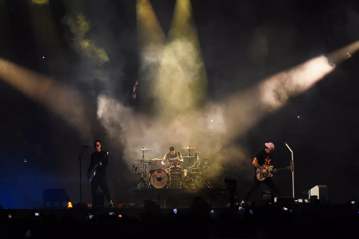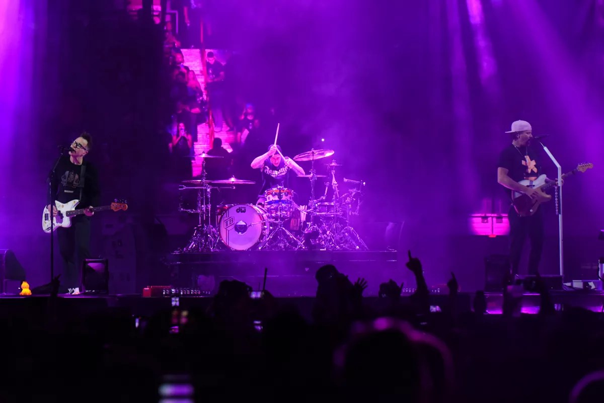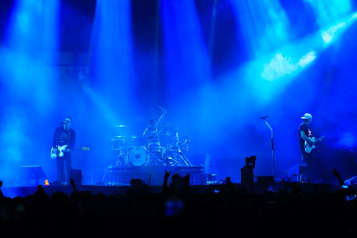 At 9 p.m., the telltale gong of “Rest in Peace” (AKA the theme song of WWE’s the Undertaker) signaled Blink-182’s arrival. The trio made its way to the stage and ripped into “Feeling This.”