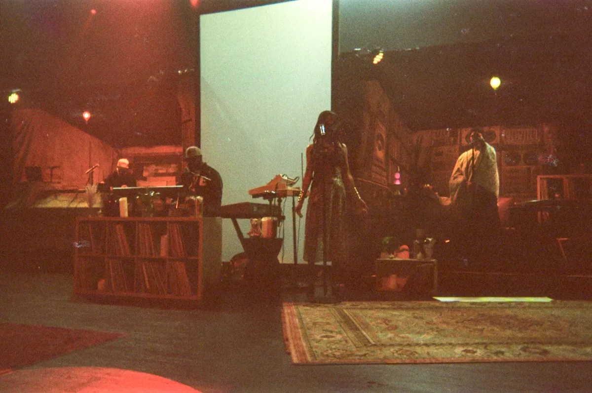 Once inside, the stage setup, designed to resemble something between a comfy home and a hip clubhouse complete with lava lamps, walls of vinyl, and easy chairs, reinforced this vibe. Towards the back, there were two small enclaves. One housed Maman – who got his start as a rapper in the early nineties with the Whooliganz before building an epic producing career that includes work with Eminem, Mobb Deep, Action Bronson, and more – a nonstop, head-bobbing ball of energy with a smile so big throughout the set it looked like he’d just won the lottery – twice. In the other, you had Badu, in a signature headwrap and quilted oversized shawl, knocking out beats and accent on a drum pad between the mind-bendingly on-point flow state vocals of a genius in control of her full melodic range and internal power.
