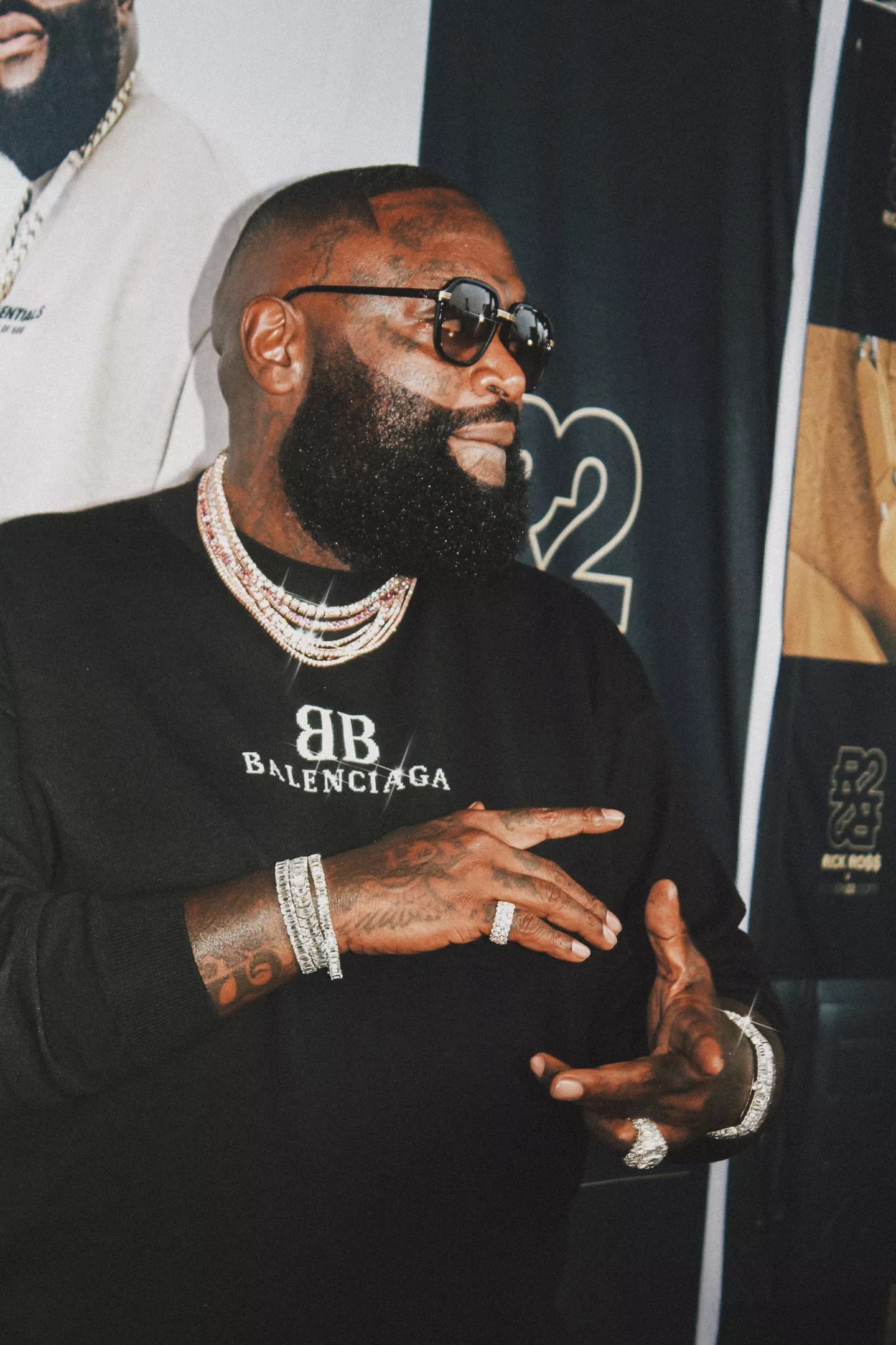 The star-studded affair drew rappers like Young M.A. and Nino Breeze, famed jeweler Johnny Dang, and, of course, Rick Ross himself. As a surprise for the crowd, actor and rapper Lil Meech walked the runway and showed his early support for Ross and the brand.