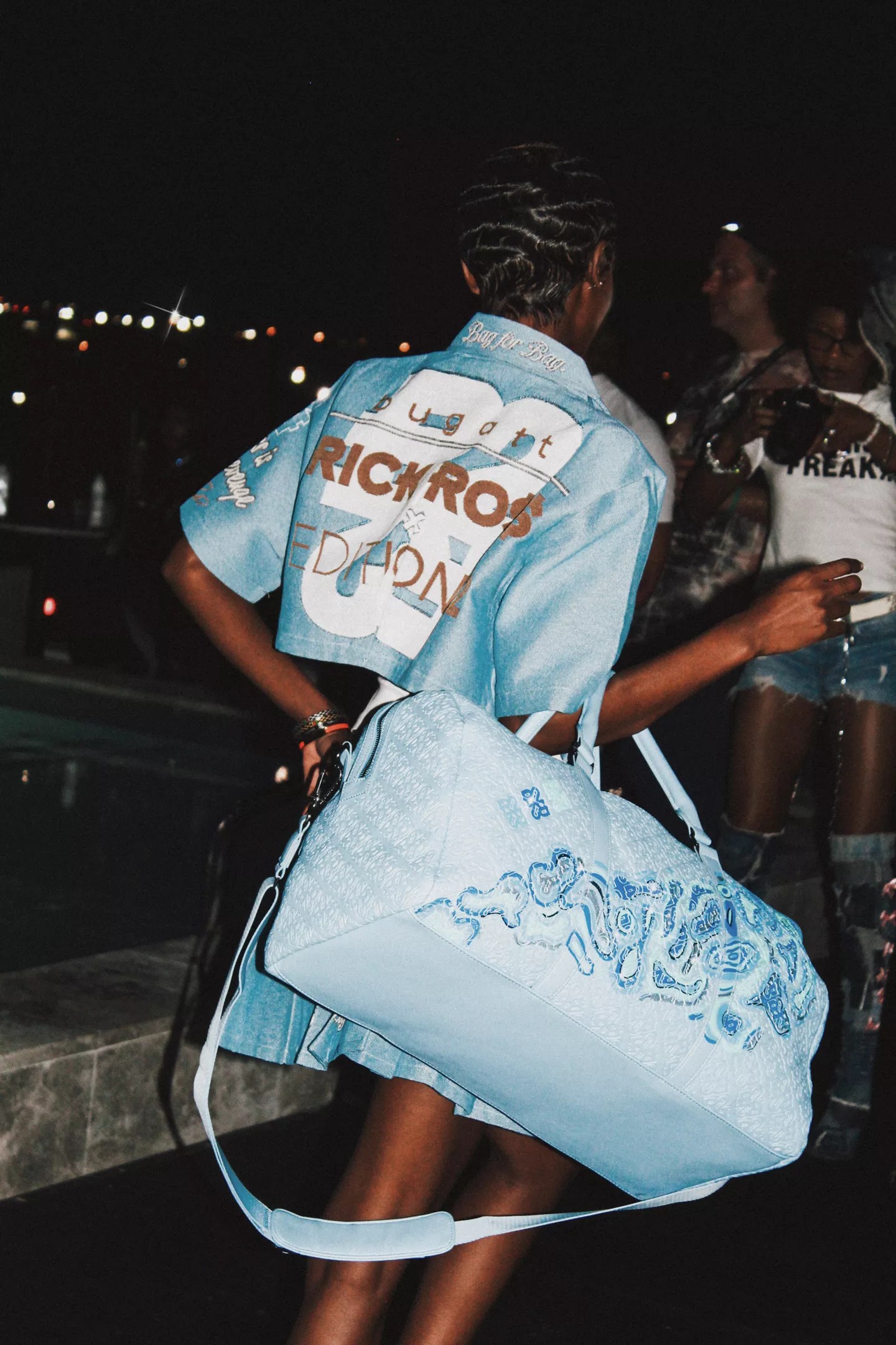 With Ross’s popularity, the rooftop buzzed with people trying to get close to him before the show began. Once the lights came up and the music hit, the crowd took their seats, ready for the reveal. Models showcased an array of bags and merchandise from the Ross-Edition 22 collaboration, with the DJ hyping up each piece as it came down the runway.
