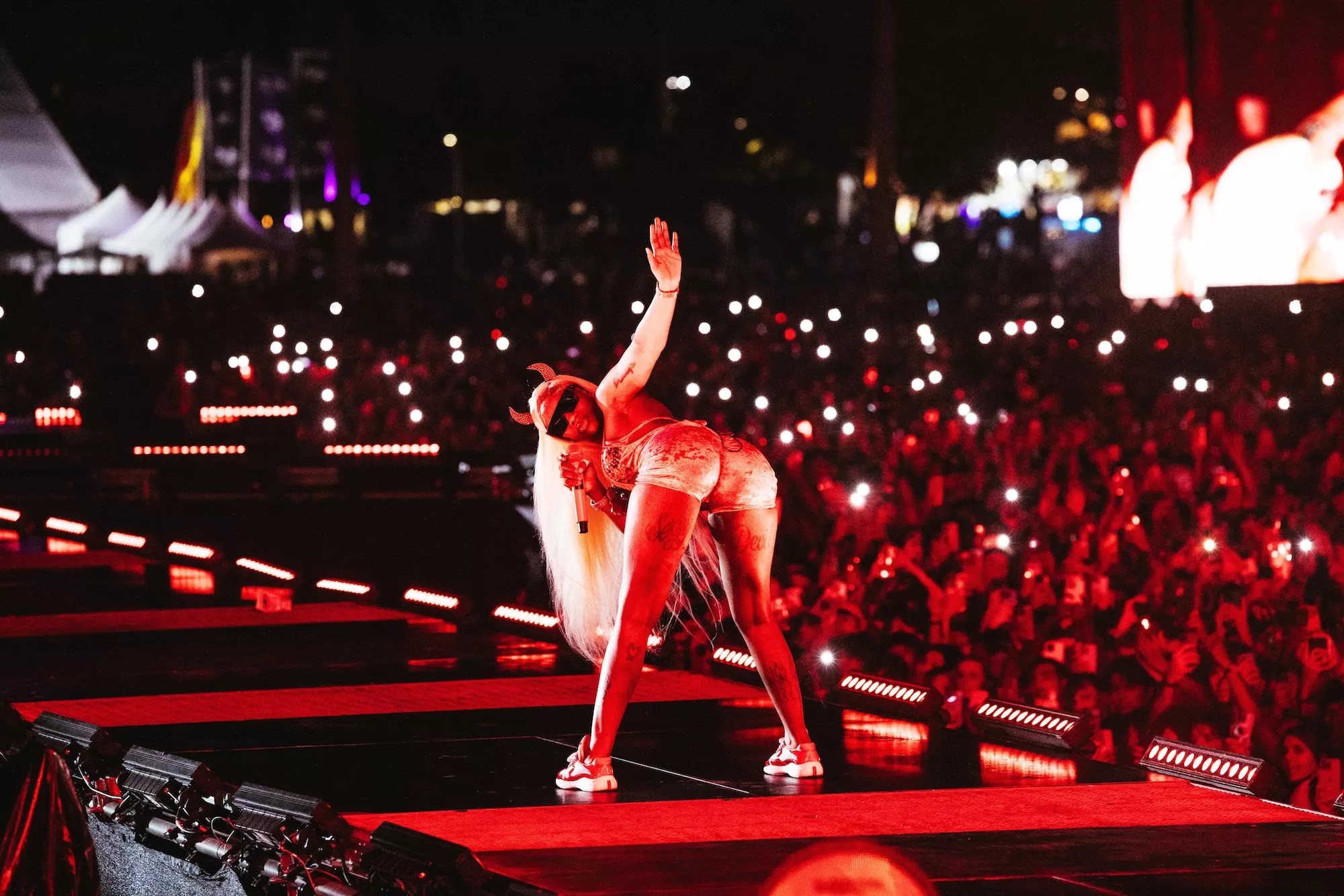“Get it, Sexyy!” chanted the crowd at Rolling Loud as Sexyy Red hopped on stage for another appearance at the festival, this time with a fuller music catalogue to back her up. If JT’s set from yesterday was all about ass-shaking, Sexyy’s set was just about being ratchet as hell. Known for her outspoken lyrics, the St. Louis native came out in an all-red fur jacket and devil horns to match. Beyond the ass-shaking, girls were getting down low and screaming out verses that would send your grandma into cardiac arrest. Things started strong with hits like “Pound Town” and “Whatchu Kno About Me” and continued to build thanks to Sexyy’s immense tracklist of viral songs. At one point during the show, she brought out South Florida rapper Hotboi for two songs before getting down and dirty on stage again. She had dancers on stripper poles for the song “Looking for the Hoes,” but then the lights went green as she rapped her verse off Tyler, the Creator’s “Sticky.” She closed off with songs “SkeeYee” and “Get It Sexyy,” giving the crowd the Hood’s Princess best on that stage.