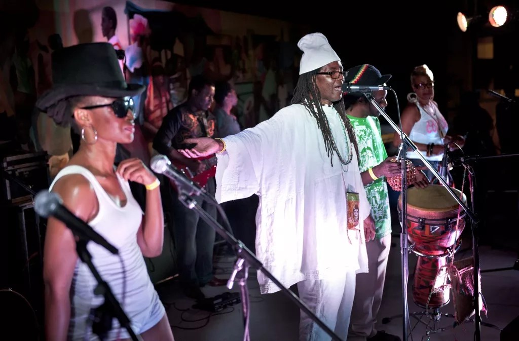 Local Miami artist and musician Jude Papaloko Thegenus and his band Loray Mistik perform at Big Night in Little Haiti.