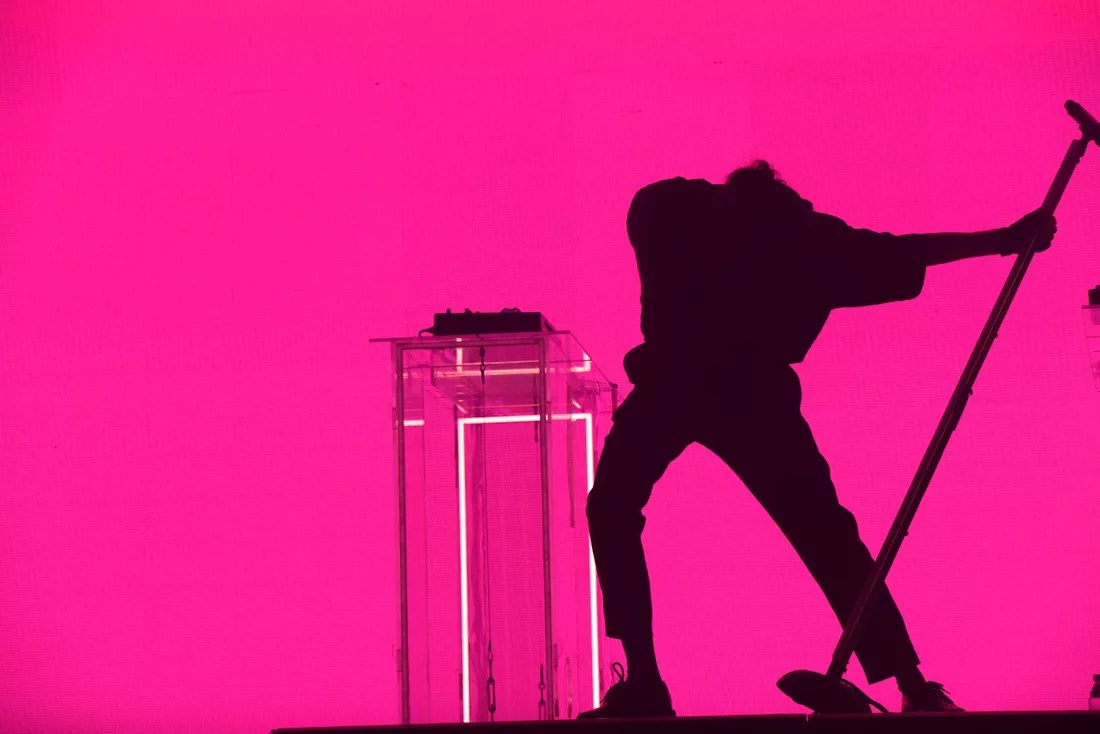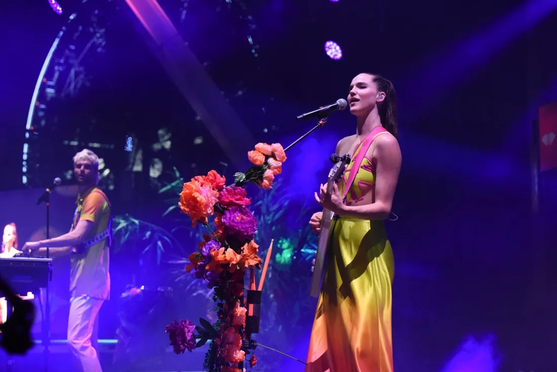 Hailing from West Palm Beach and New York, the duo that is Sofi Tukker took to the Live Stage on the foothills of their upcoming album, Wet Tennis, set for release on April 29. It became apparent that the two take a live set seriously. “When we play a live set, we pull out all the steps,” Sophie Hawley-Weld told New Times earlier. “We have some amazing dancers that will inject a lot of joy.” Her counterpart, Tucker Halpern, added that he thought their set “will just be fun, good vibes.” And fun it was. The stage was designed in lush tropical landscapes that gave some color to the otherwise concrete foundation. Hawley-Weld, equipped with a Gibson Flying V, played with gusto as she sang from the discography. Halpern, behind his hardware and in front of the crowd, hyped everyone up. “We debuted this live set up at the last Coachella,” Halpern said. “We have a big sculpture – we call it the ‘book tree.’ It has screens all around it, and when you hit it with drum sticks, it plays different samples.”