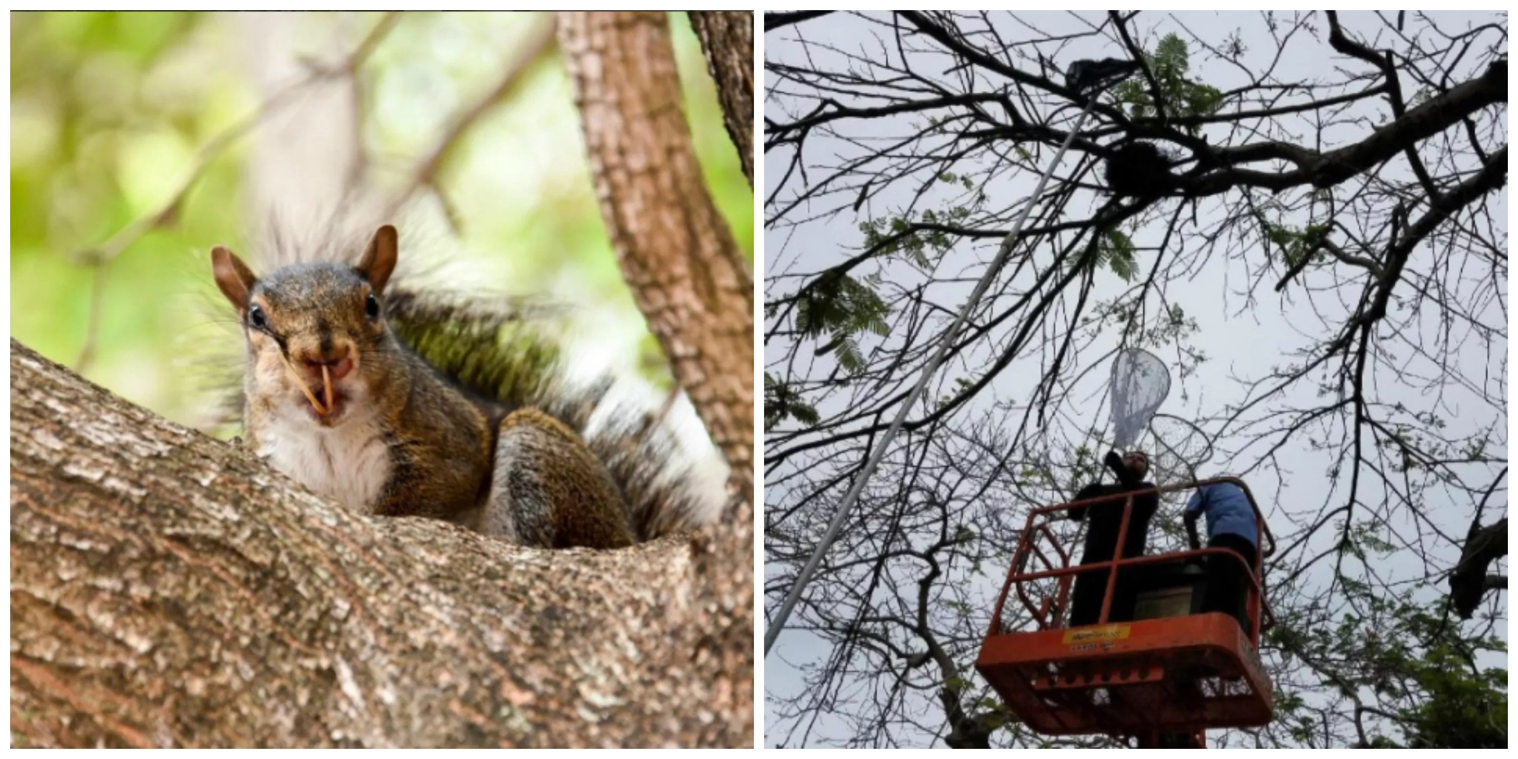 Once they trap Sabrina, Gene says it would take less than ten minutes to trim her teeth and save her life. But getting the squirrel down from the 22-foot tree where she sleeps has proven difficult. For the past 17 days, Gene, Buhl, and their army of helpers have made attempt after attempt. They’ve set out traps, purchased a telescoping pool net, hired a professional wildlife trapper, and given Sabrina small doses of baby Benadryl. But so far, nothing has worked.