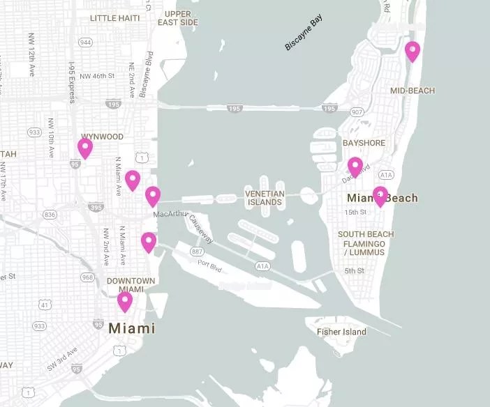 Uber, Lyft, and the Lyft ArtHop bus route for fancy people. We don’t need to explain how to use ridesharing services in 2017. If you’re heading to or from one of the major art fairs, such as Pulse or Art Basel, your driver will likely be directed to a designated pickup or drop-off point near the fair. Otherwise, Uber, at least, doesn’t seem to be changing much this week.