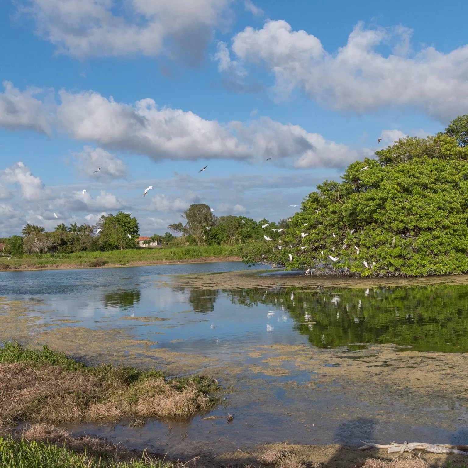 The lakes and trees of the former Calusa Country Club currently serve as habitats for all manner of wildlife, which residents fear will be displaced by development.