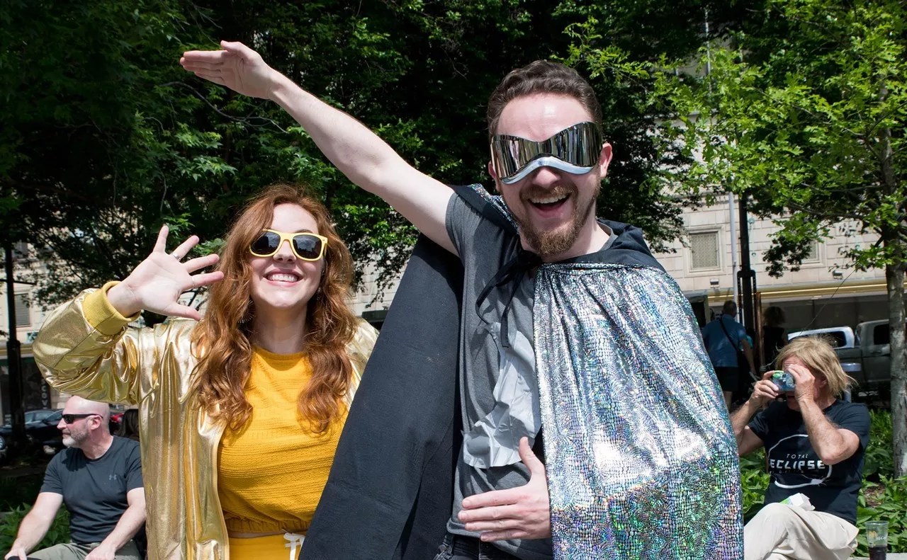 Also in Main Street Garden were twins Alex and Ariel from Los Angeles. Dressed in sun- and moon-inspired outfits, they explained why this event was significant enough to travel all this way.