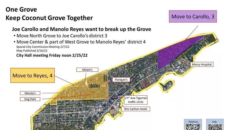 The process is meant to keep communities intact and protect minority voting blocs. But Coconut Grove residents are arguing that the proposed redistricting map, which was first presented to the Miami Commission on February 7, does the opposite.