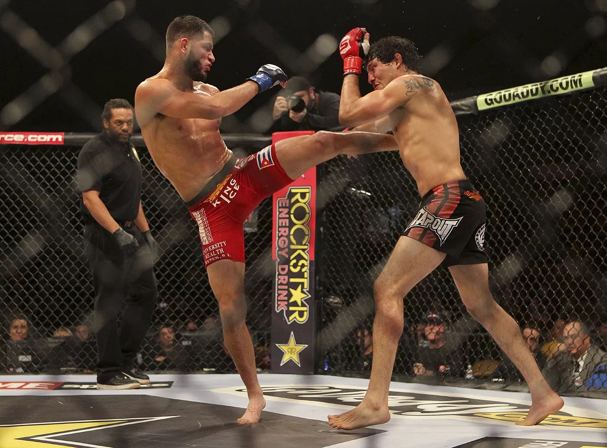 Masvidal kicks opponent Gilbert Melendez during a 2011 bout.