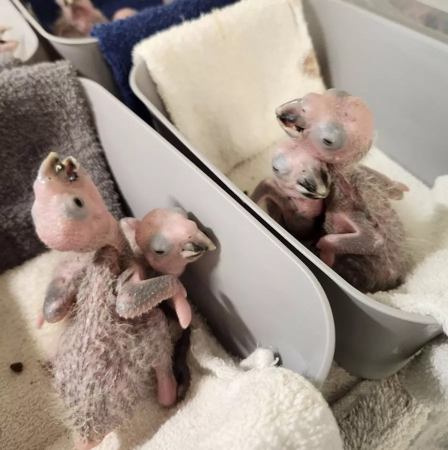 Under the care of the Rare Species Conservatory Foundation, most of the birds are thriving and nearly fully feathered.