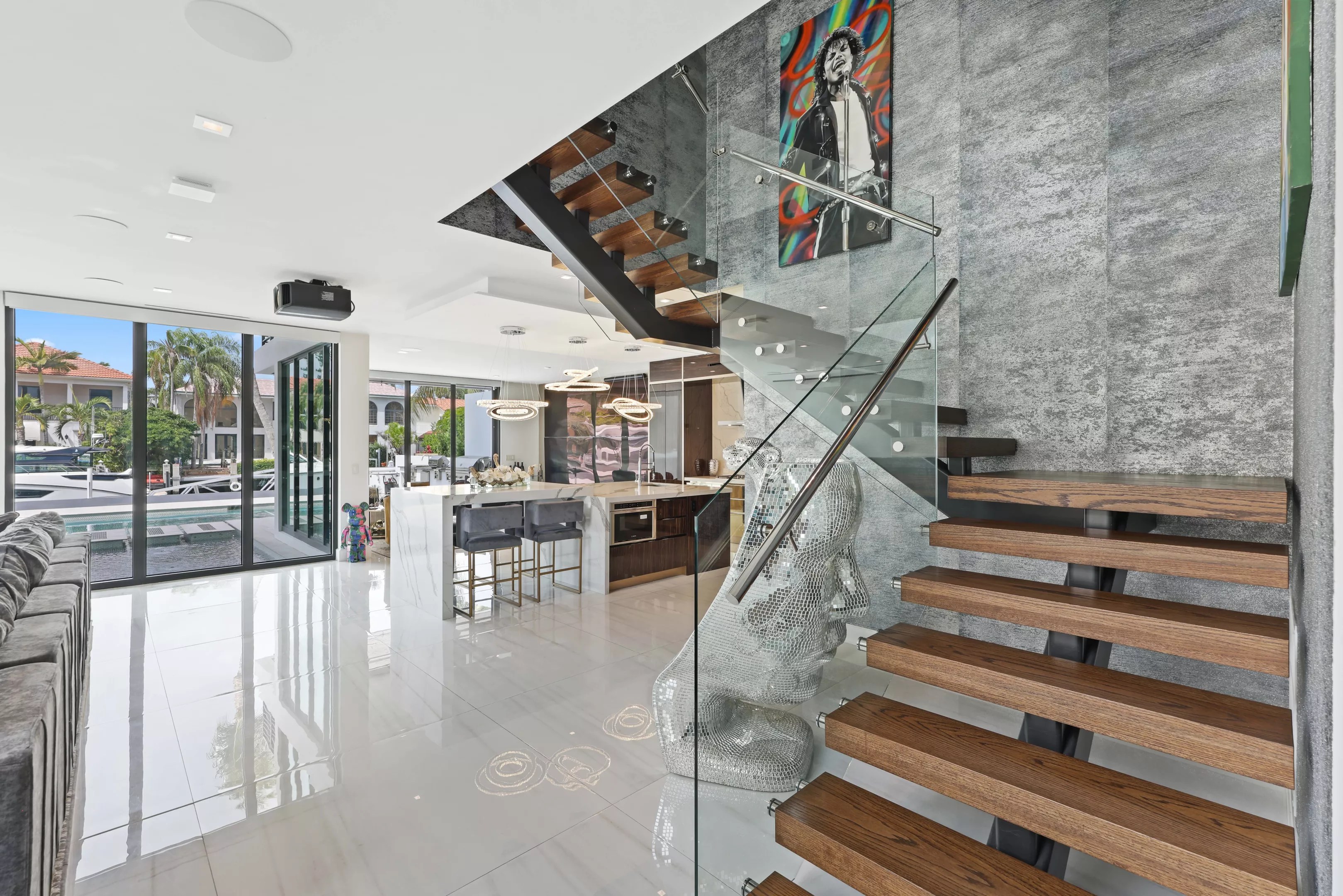 Kimberly Knausz of One Sotheby’s International Realty is the listing agent on the three-story, 6,000-square-foot property located off Las Olas at 509 Coconut Isle Dr. The home features five bedrooms and six and a half bathrooms, plus floor-to-ceiling glass windows, a dedicated fitness room, smart home technology, a wet bar on the third floor overlooking downtown Fort Lauderdale, and a gourmet chef’s kitchen.