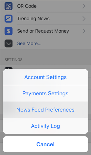 2. Tap “Settings” and then “News Feed Preferences” (shown below).