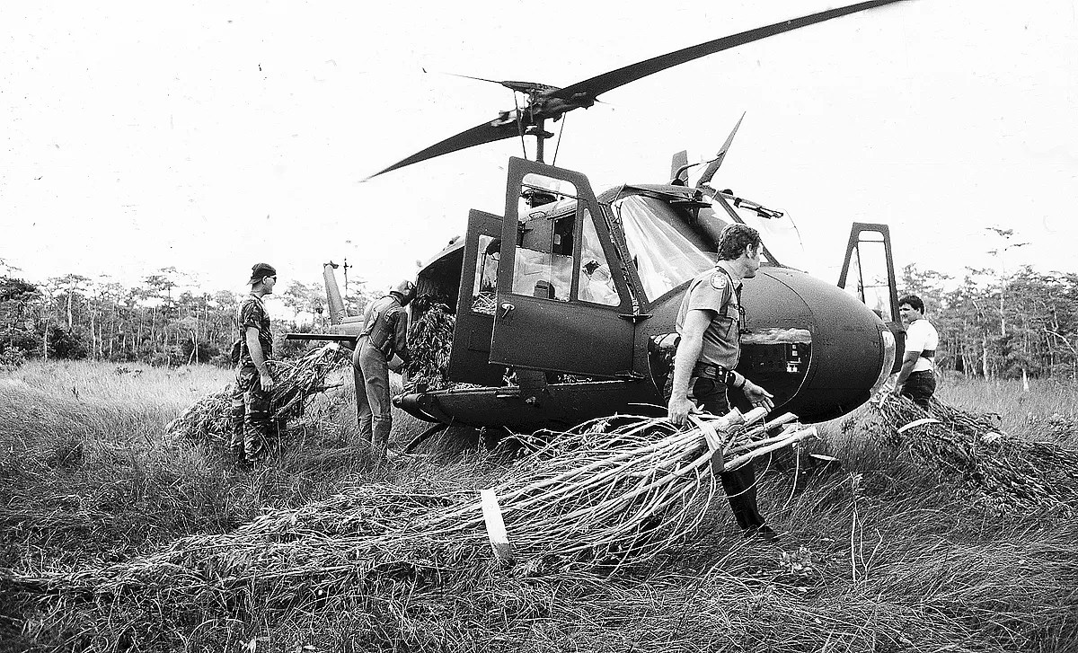 What had once been a sleepy, out-of-the-way fishing village was suddenly notorious for being one of the most corrupt cities on Earth. But Everglades City was far from the only town in Florida living large in the drug game. In 1988, the Miami Herald revealed cannabis was the second-biggest crop in the state after citrus fruit and raked in upward of $400 million per year.