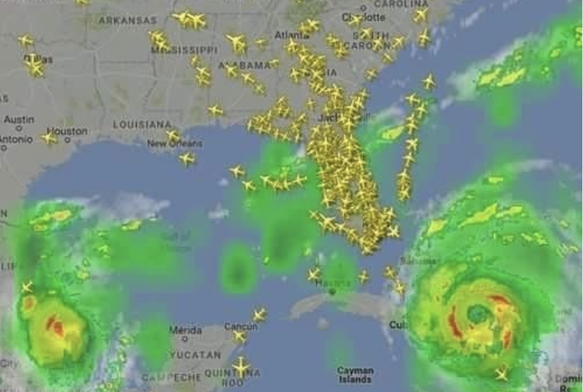 The planes joined an incredible convoy of airliners headed away from Irma today: