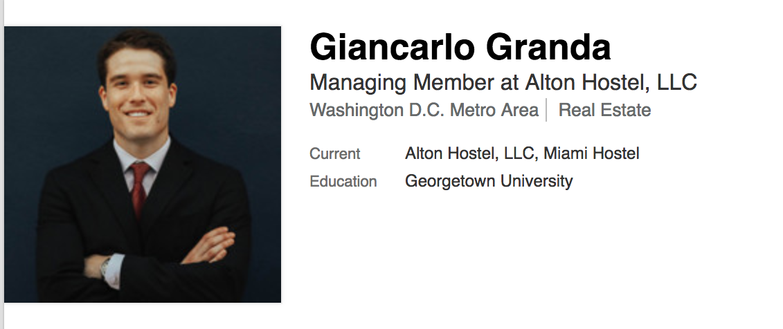 According to Miami-Dade County property records, the Falwells eventually bought the Alton property in February 2013 for $4.65 million. At the time, Falwell’s then-23-year-old son, Jerry “Trey” Falwell III, was listed as the LLC’s sole owner – but Granda was later added to the LLC’s documents. Granda lists himself as the current “owner” of Miami Hostel and a “managing member” of the LLC.