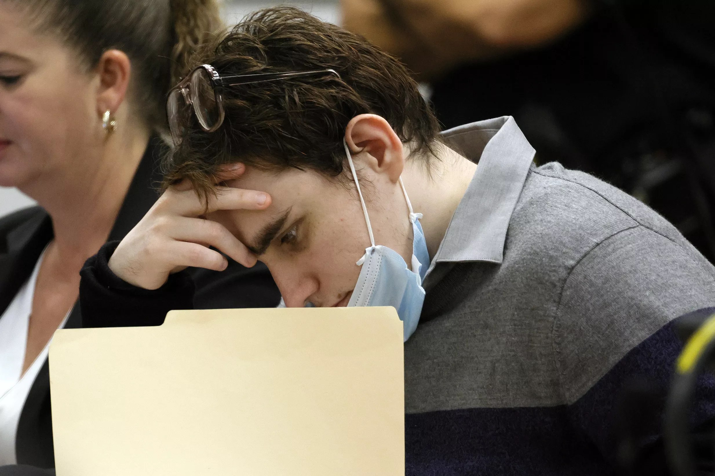 Nikolas Cruz at the defense table on October 13, 2022, prior to the issuance of the verdict in his sentencing hearing.
