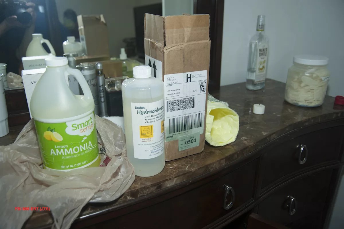 That argument may not have helped Suarez at trial in light of the other evidence, though. Photos from the case show containers of ammonia and hydrochloric acid on a dresser in his bedroom, and a computer expert found that Suarez had searched phrases such as “how to make a bom [sic]” on Google. He was also recorded talking about putting timer bombs in the parking lot of Miami’s Dolphin Mall and burying a bomb in the sand on a beach in the Keys.