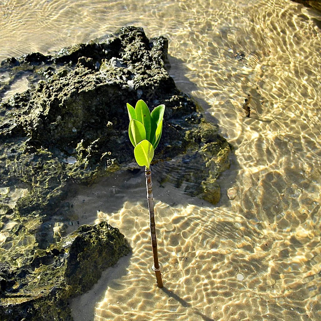 A young red mangrove propagule growing on Munyon Island.