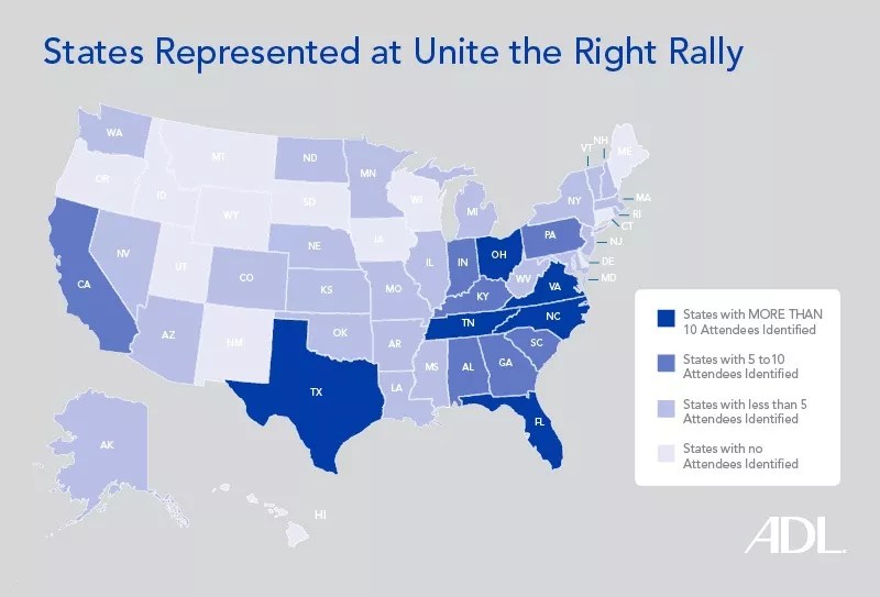 “The willingness of so many people to commit both time and financial resources to travel for the cause points to a movement energized by the leadership of the alt right, and actively capitalizing on a perceived window of opportunity to spread their message and recruit new members,” the ADL wrote. “It’s also a demonstration of the alt right’s successful transition from largely an online, or virtual, phenomenon to a ‘real world’ movement.”
