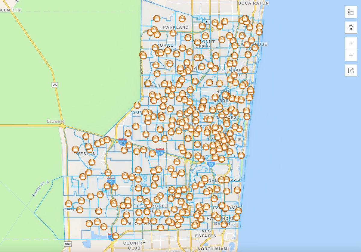 Broward County offers an interactive map of all the sites, which you can find here.