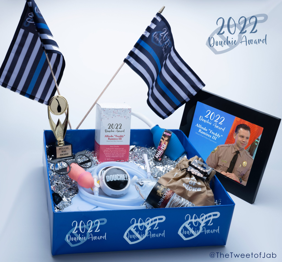 Suarez isn’t the only Miami official who can expect to receive a package from Stevens. This week Miami-Dade Police Department (MDPD) Director Alfredo “Freddy” Ramirez III should be looking out for his own “Douchie Award”: a box containing a trophy, two “thin blue line” flags, a literal bag of dicks, and an anal douching device.