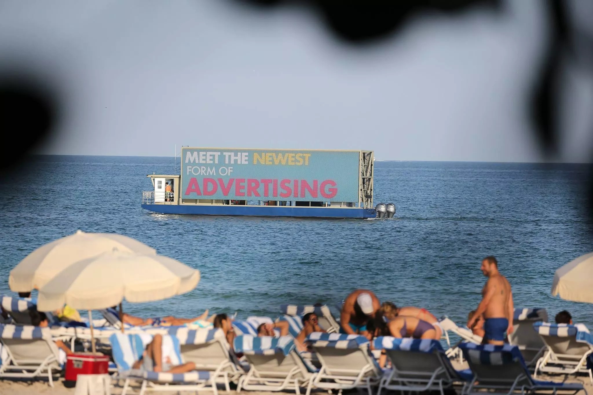 Though some Miami Beach commissioners thought they were banning floating billboards like Ballyhoo’s from the ocean waters off the city, the regulation they passed actually applies only to certain parts of Biscayne Bay. The owners of Ballyhoo Media, who fought back against complaints that the ads were intrusive, say they are pleased to have the mayor’s business no matter how he voted on that particular ordinance.