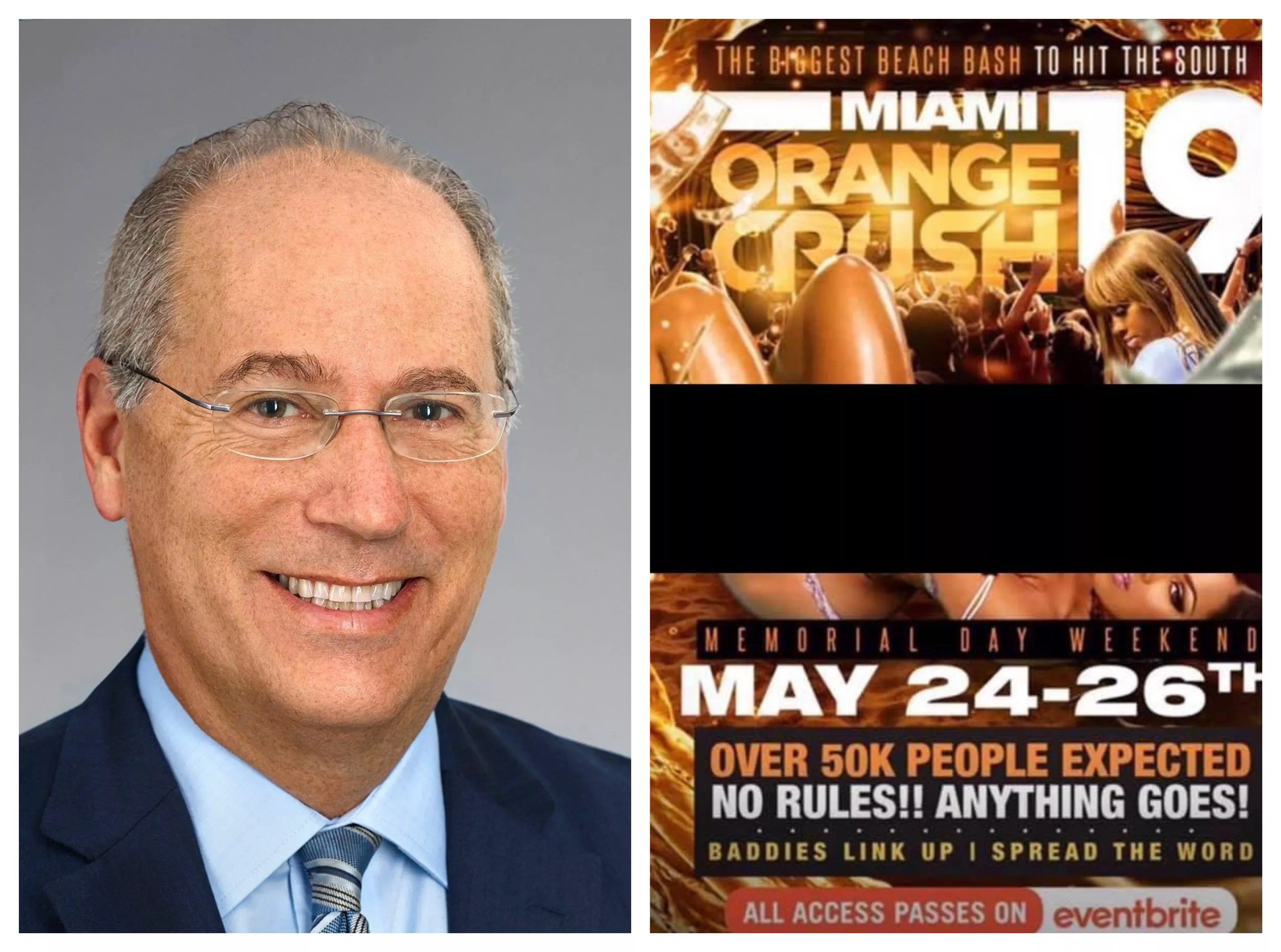 Miami Beach Mayor Dan Gelber was so irked by a Memorial Day weekend event flyer with a bikini-clad woman and the tag line “No rules!! Anything goes!” he included it in an email blast to residents explaining why the city needs, well, more rules. Attaching a screenshot censoring the woman’s body, he declared, “Ocean Drive should be the postcard image for our city – not a stretch where residents are sometimes afraid to go and visitors think anything goes.”