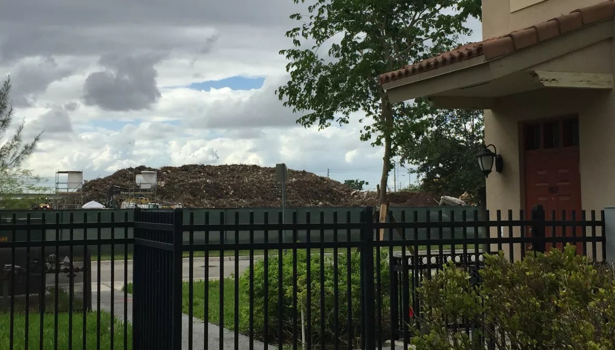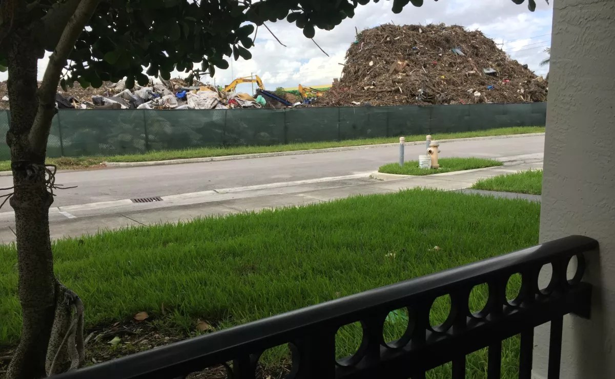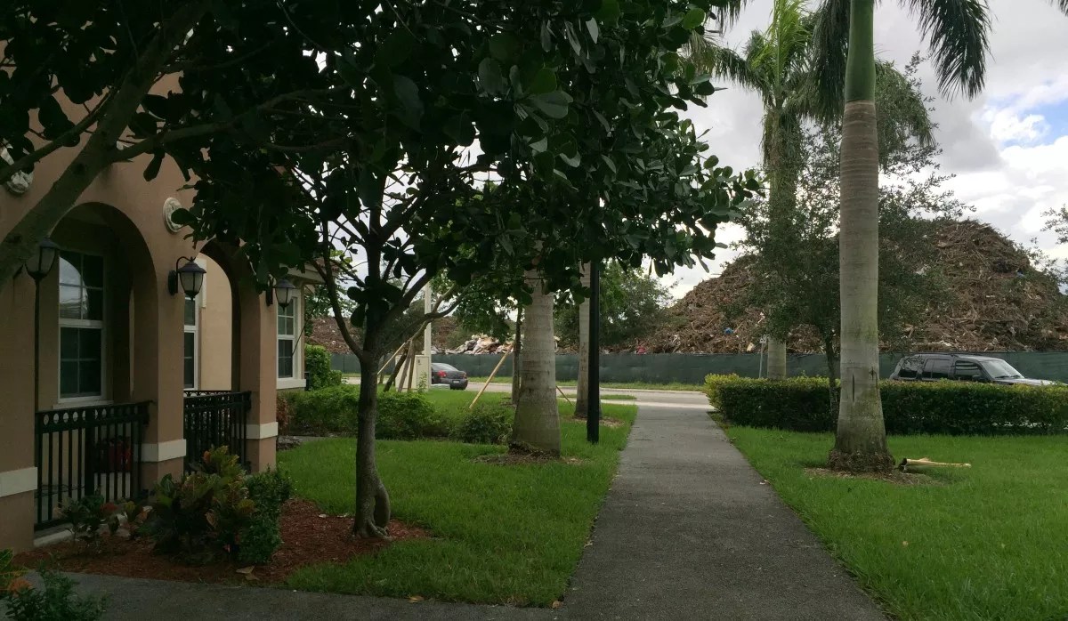 Out of six debris sites in Miami-Dade, three are located in empty lots beside airports, one is next to an existing landfill, and one is inside a largely industrial area. The sixth is Liberty City’s Poinciana Industrial Park, a plot located at NW 75th Street and NW 25th Avenue across from Northpark, a gated residential neighborhood with more than 350 units, including subsidized housing. The mostly black and Hispanic community includes families, children, senior citizens, and people with disabilities.