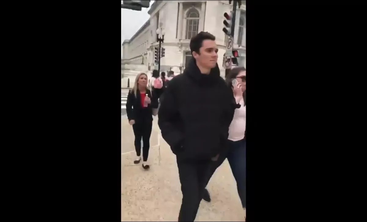 In the video, Hogg politely ignores Greene, who follows him for a block or two while addressing the teen.
