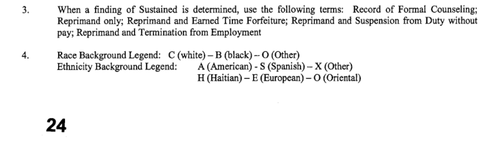 But the Miami Police Department still uses the word to describe people who file complaints with its Internal Affairs section. On MPD’s intake forms, the ethnicity options for complainants include “Oriental,” “American,” “Spanish,” “Haitian,” “European,” or “Other”: