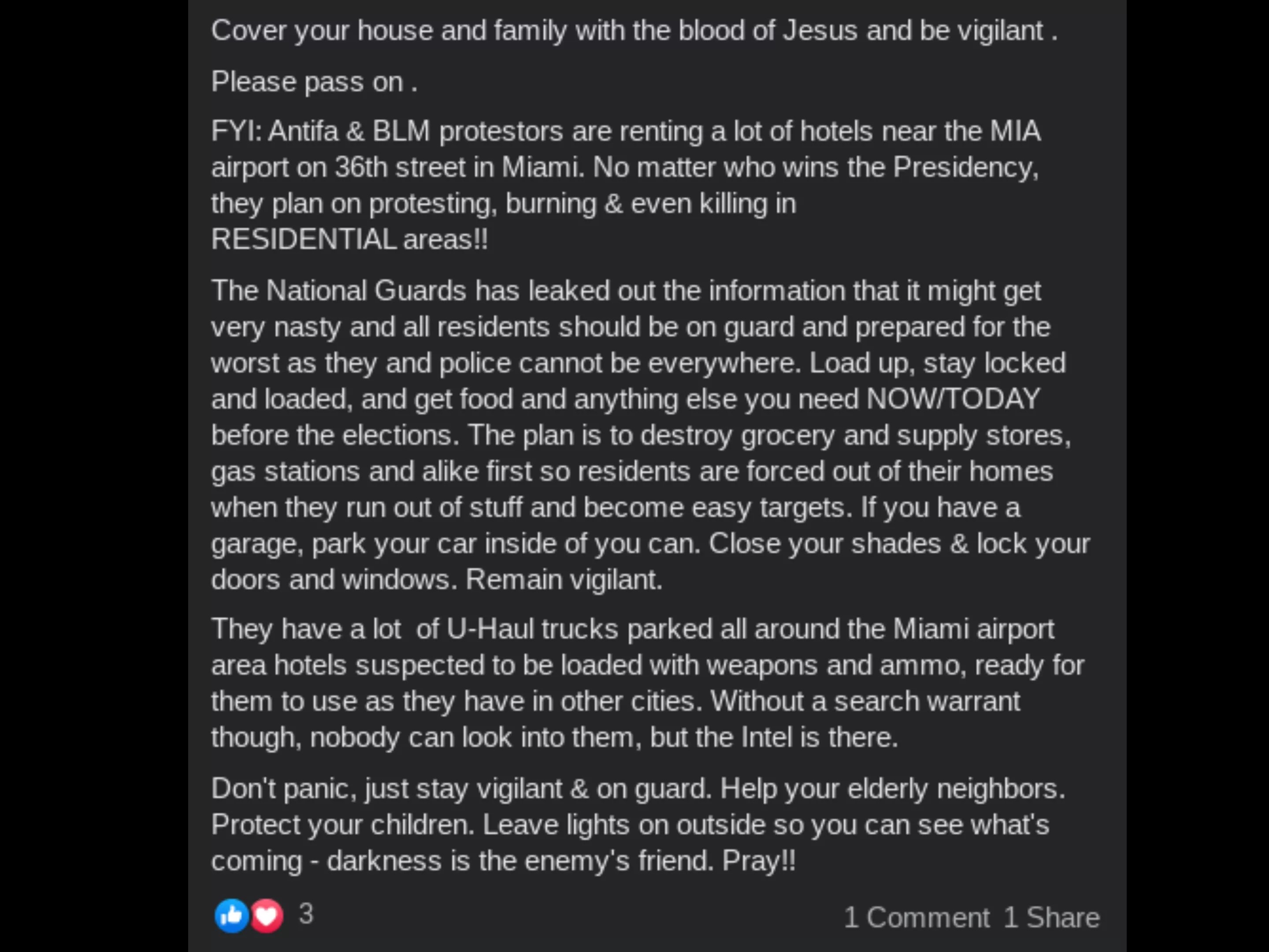 “They have a lot of U-Haul trucks parked all around the Miami airport area hotels suspected to be loaded with weapons and ammo, ready for them to use as they have in other cities. Without a search warrant though, nobody can look into them, but the Intel is there,” the posts state.