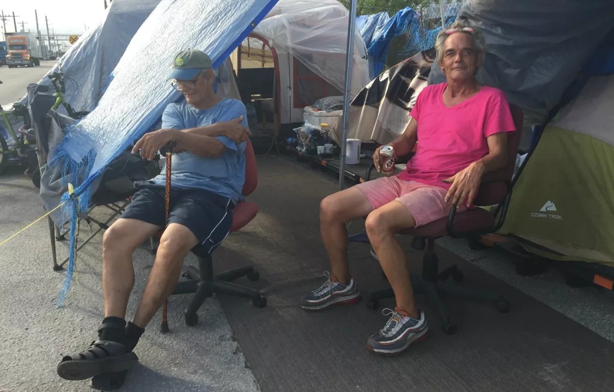 Since the hurricane, residents say persistent storms and showers have flooded the premises, ripping tents from the ground. “One tent ended up on the other end of the railroad track,” Morales says, resting his arthritic legs.